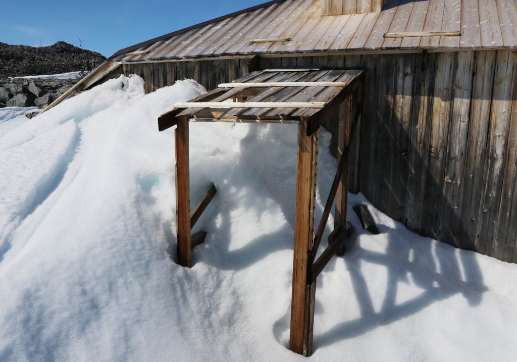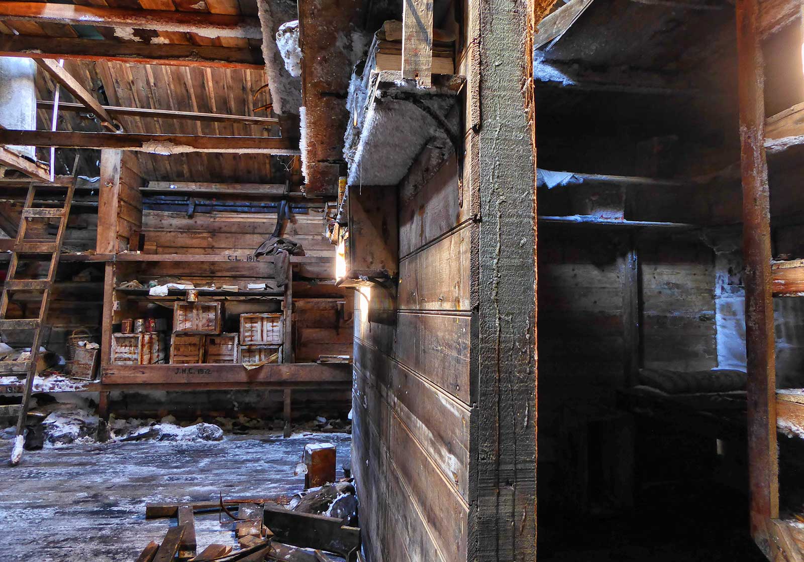 Protected under international and national law, the Mawson’s Huts historic site consists of a cluster of buildings with the main building consisting of the living quarters and a workshop, prefabricated in Sydney and Melbourne respectively and erected in just three weeks, a Memorial Cross in memory of the two members of the AAE who lost their lives and three shelters used to conduct scientific observations—two of them, now standing ruins.