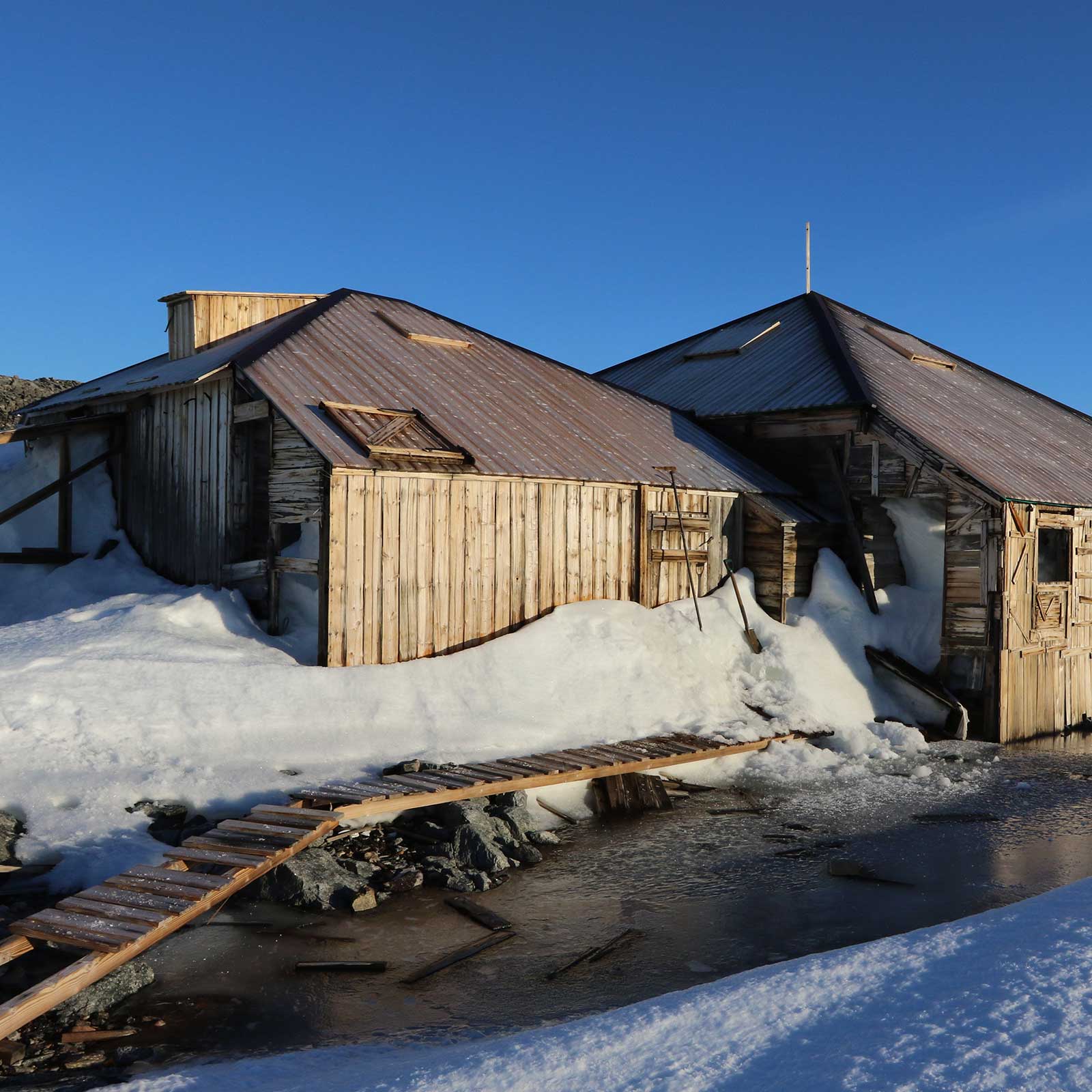 Located some 310m northeast of the Main Hut, it is still intact and largely ice free. It housed the delicate equipment that continually measured variations in the Earth’s magnetic field near the South Magnetic Pole.