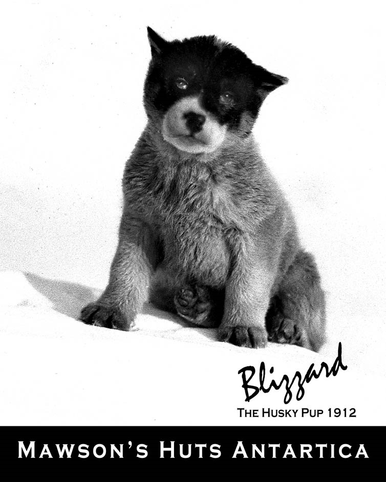 White tee-shirt with Frank Hurley's famous 1912 photograph of "Blizzard – The Husky Pup"