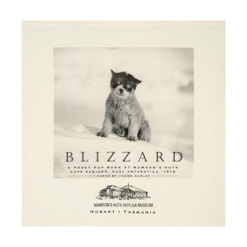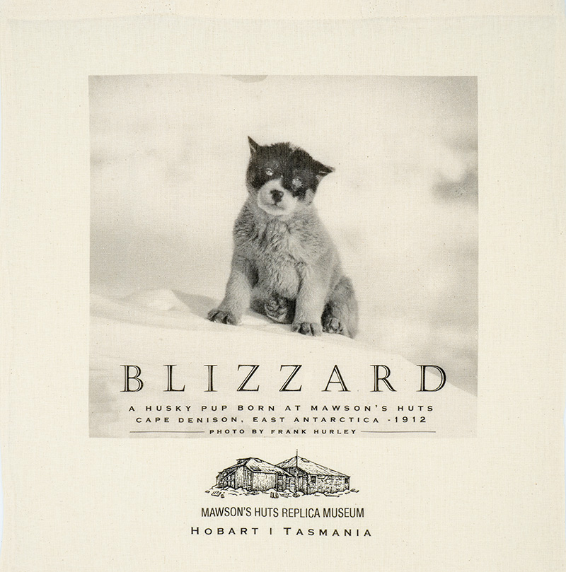 Tote bag manufactured in Tasmania by W. Garrett & Co. "Blizzard the Husky Pup" 1912 photograph by Frank Hurley
