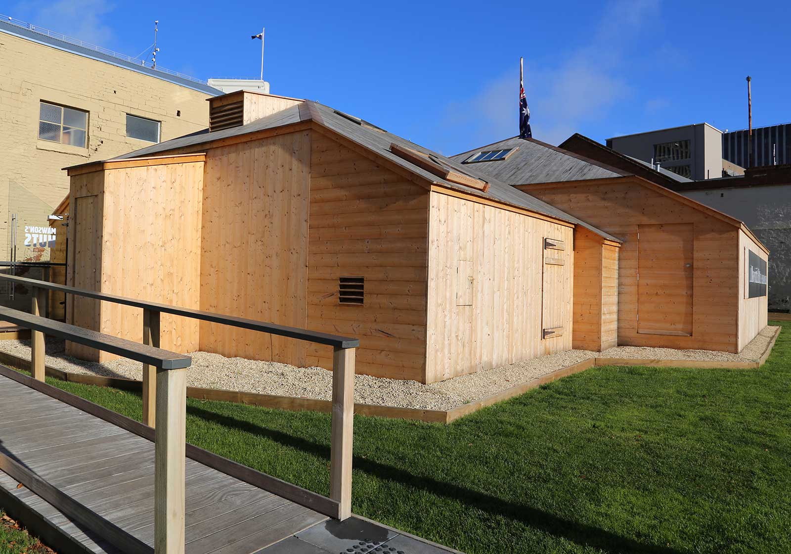 Situated on land generously provided by the Hobart City Council (HCC), the Replica Museum was constructed off-site in an area provided by the Tasmanian Ports Authority. Construction was done in three sections to allow transportation to the current site where it was bolted together for the final fit-out.